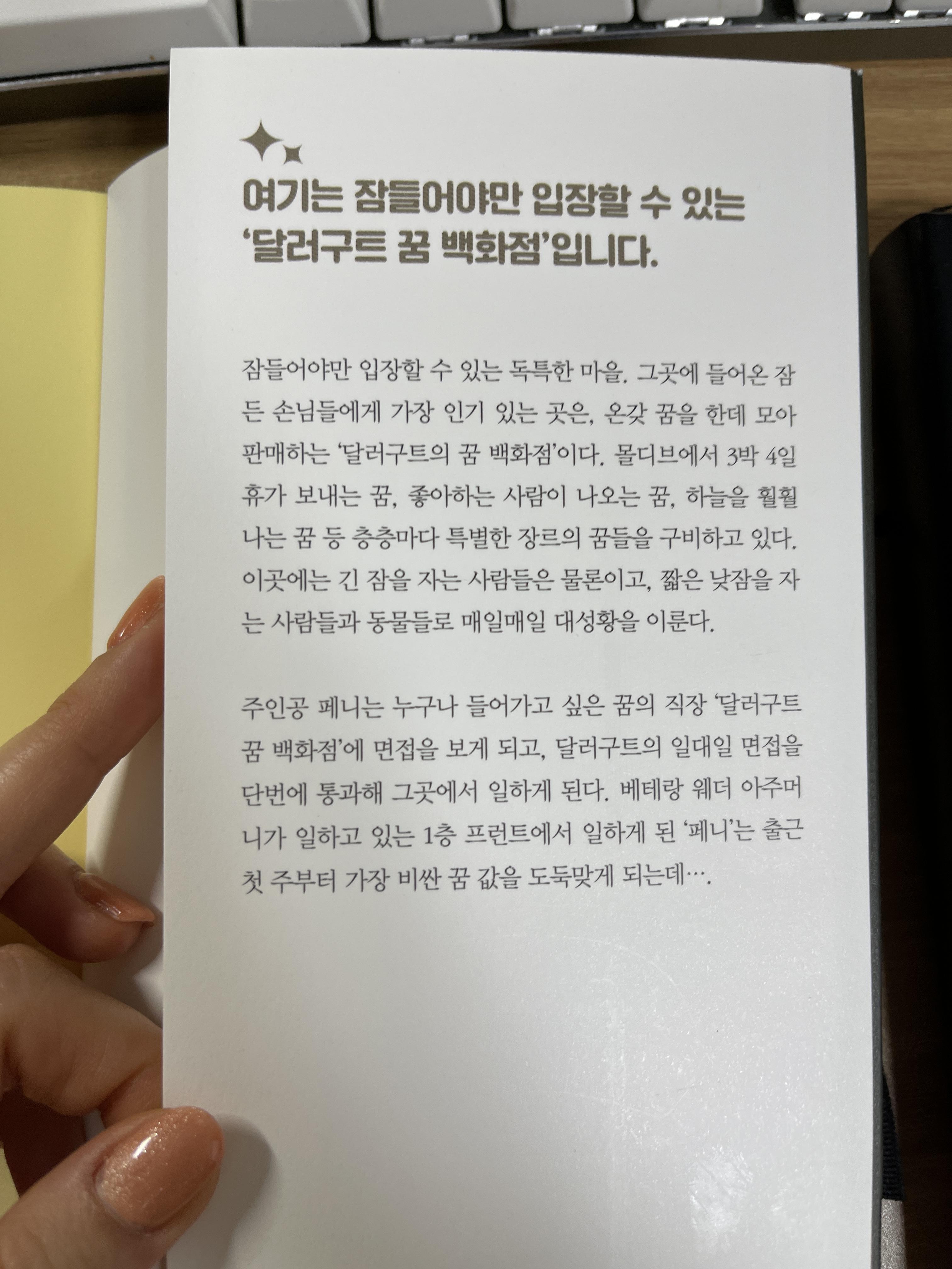 친구에게 추천받아 읽게 된, "달러구트 꿈백화점" 이라는 책이다.