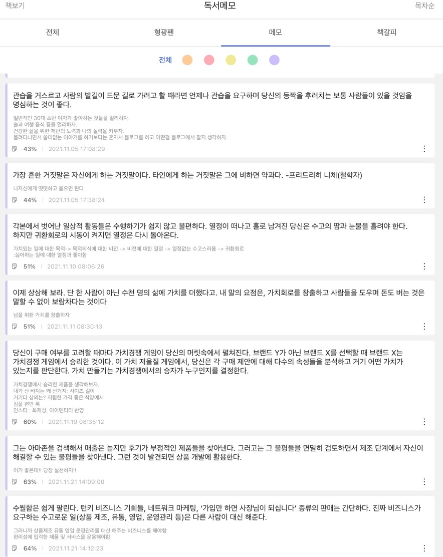 너무 형광펜을 많이 치고, 심지어 메모도 많이 한것을 발견했다.