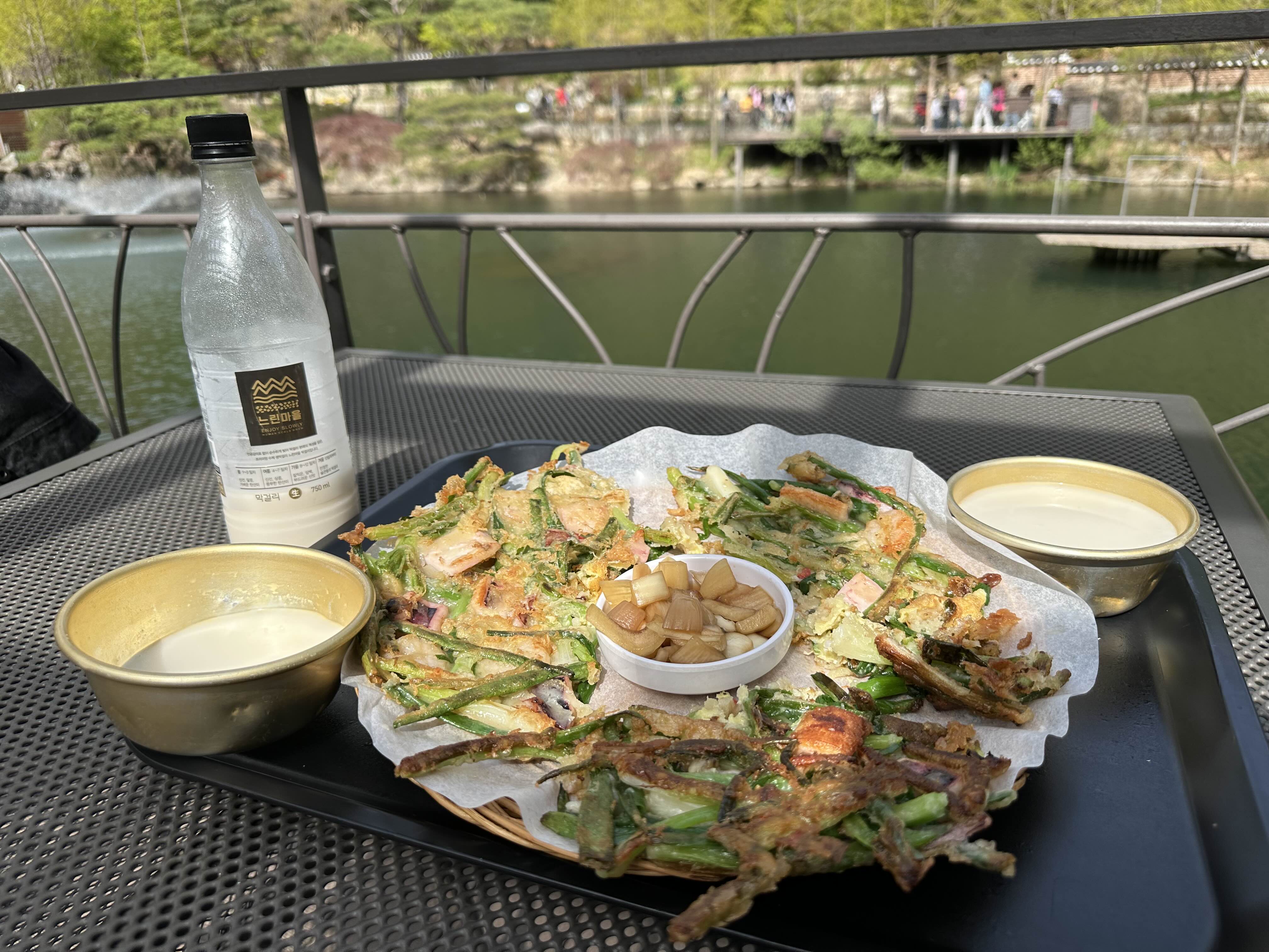 파전이 생각보다 크고, 날씨좋을 때 호수를 바라보며 막걸리와 먹으니 기분 완전 좋았다.