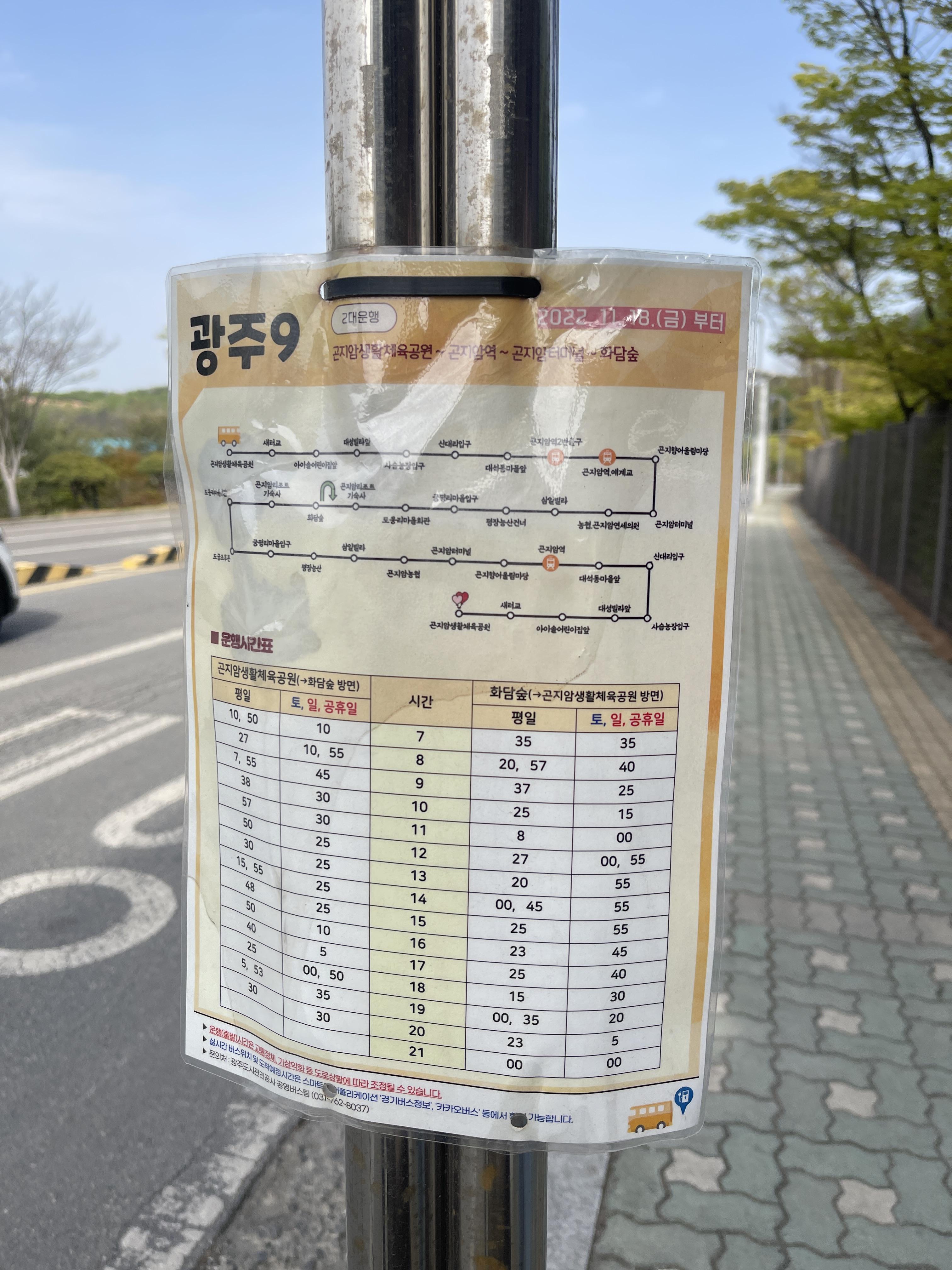 마을버스(광주9번, 배차간격 약 1시간)를 탑승하여 화담숲(곤지암리조트) 하차