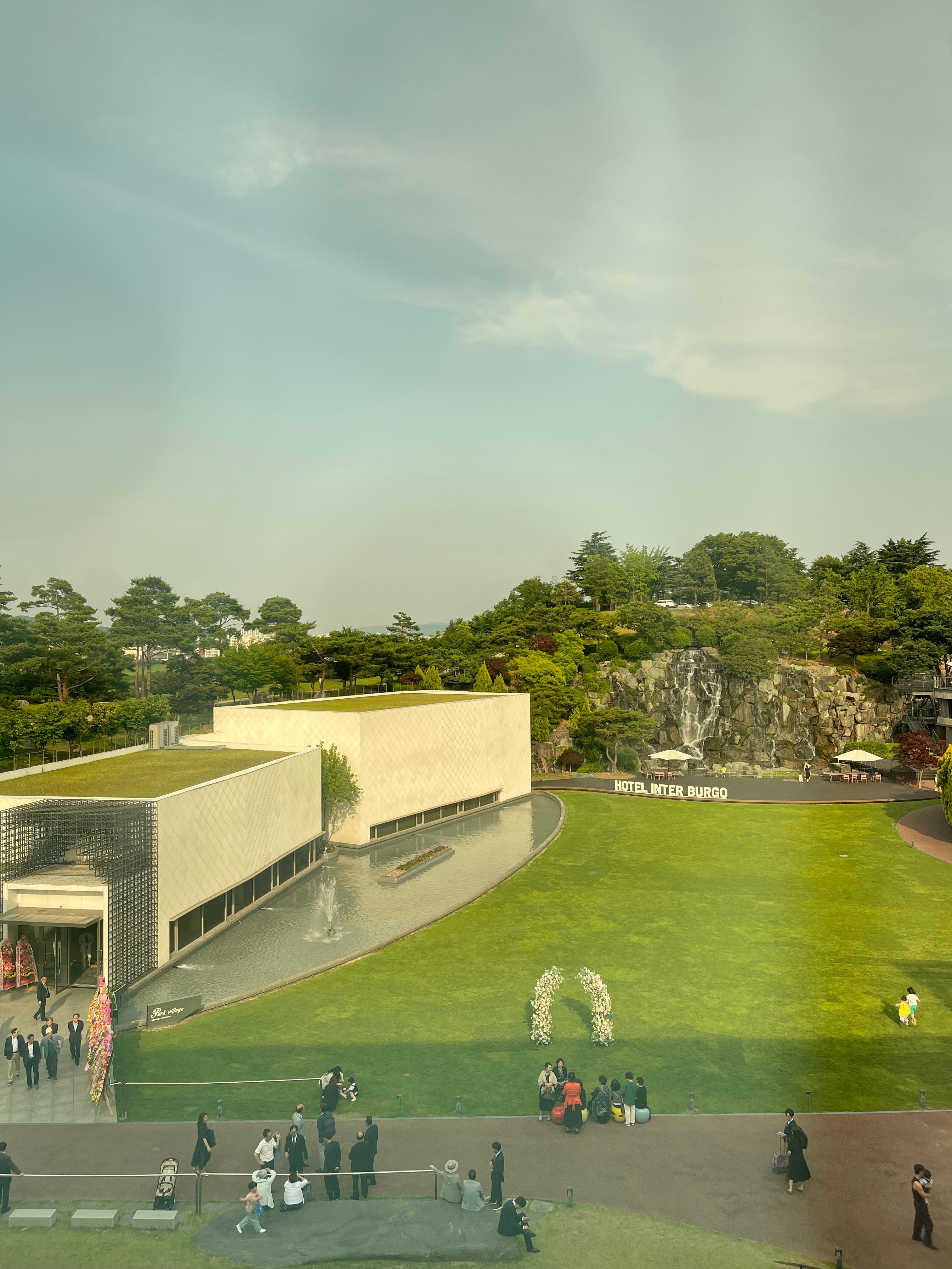 제가 본식 진행한 인터불고 파크빌리지는 빨간 웨딩카를 타고 가면서 잔디밭에서 사진을 찍습니다.
