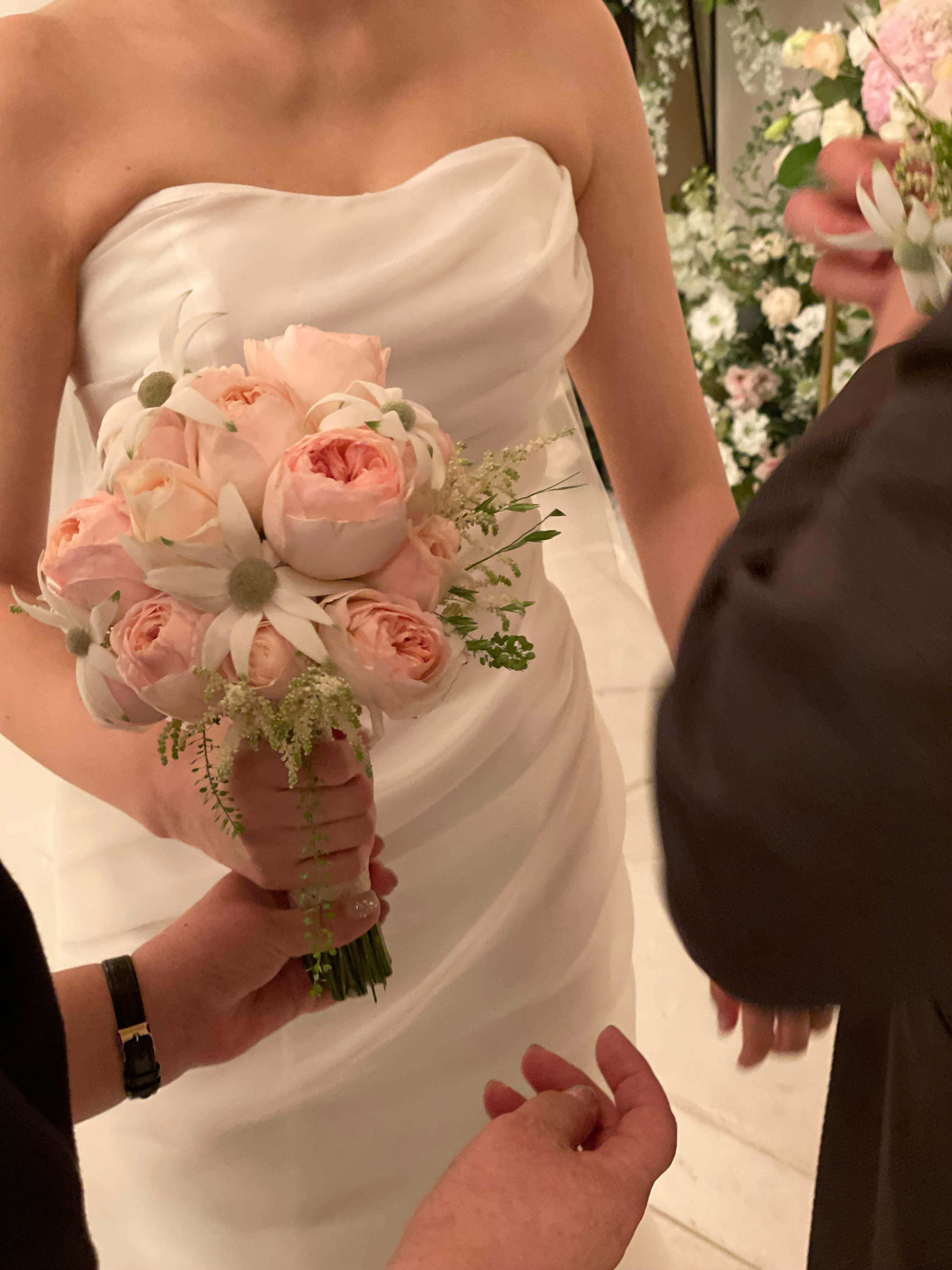 전문가가 역시 잘 고릅니다! 드레스와 찰떡인 청순하고 풍성한 부케였어요.