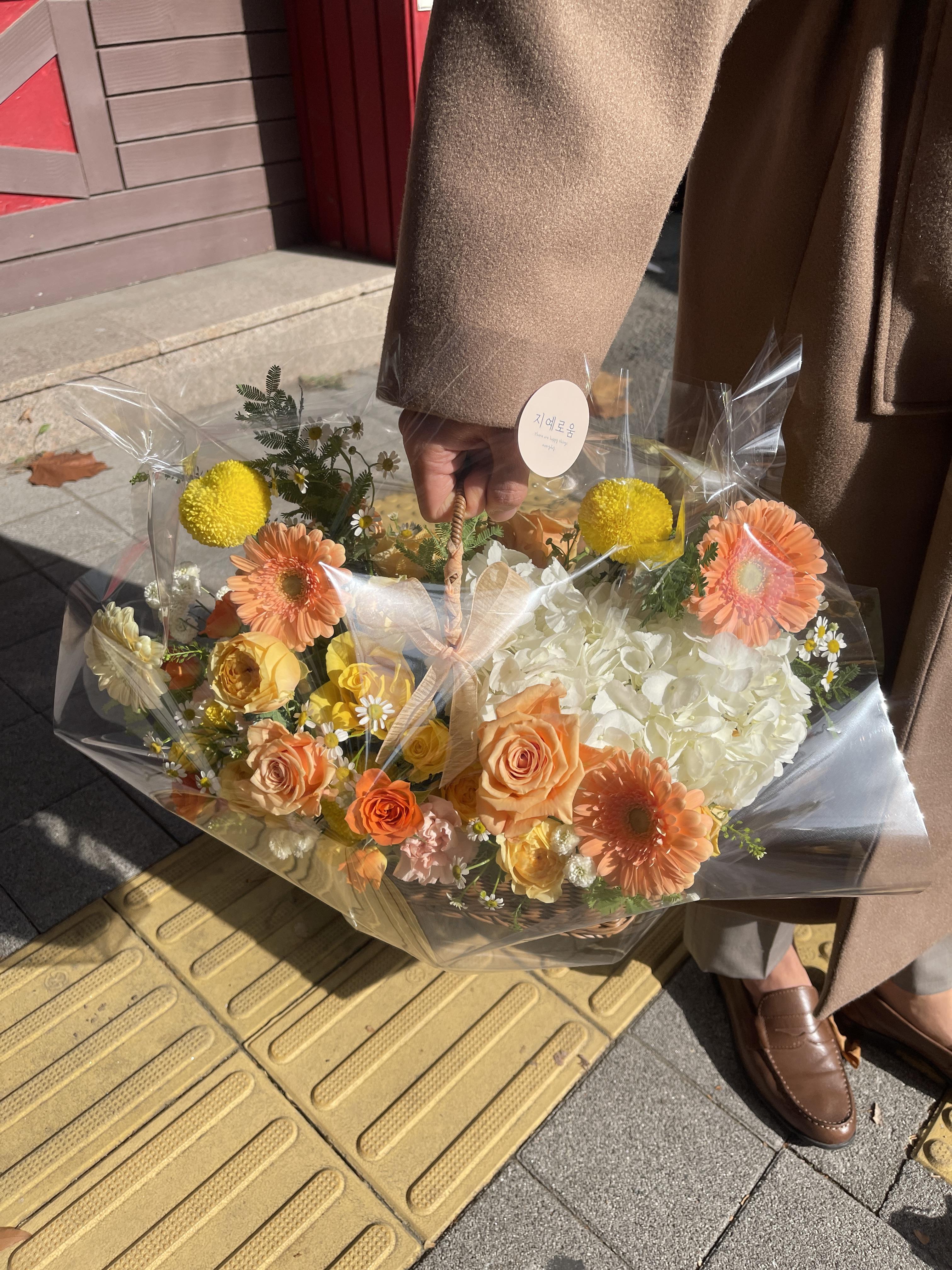 보통 인사갈때는 큰 바구니로 주문하며, 원하는 컬러나 꽃을 담고 싶어하기에 적어도 일주일 전에는 하는 것이 안정적이다.
