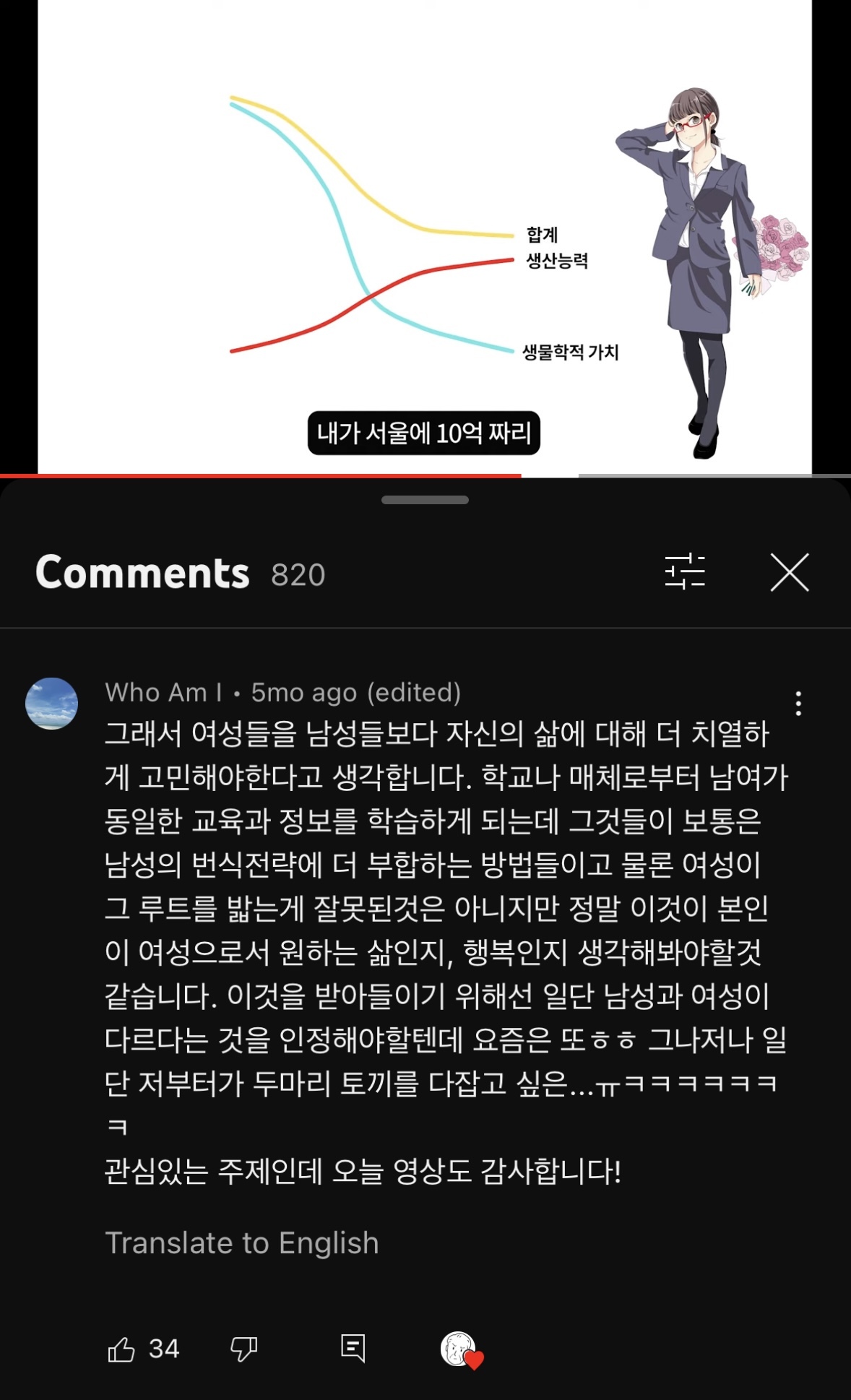 이 영상을 본 사람이 댓글을 달았는데, 영상요약과도 같은 말이여서 캡처본을 가져왔다.