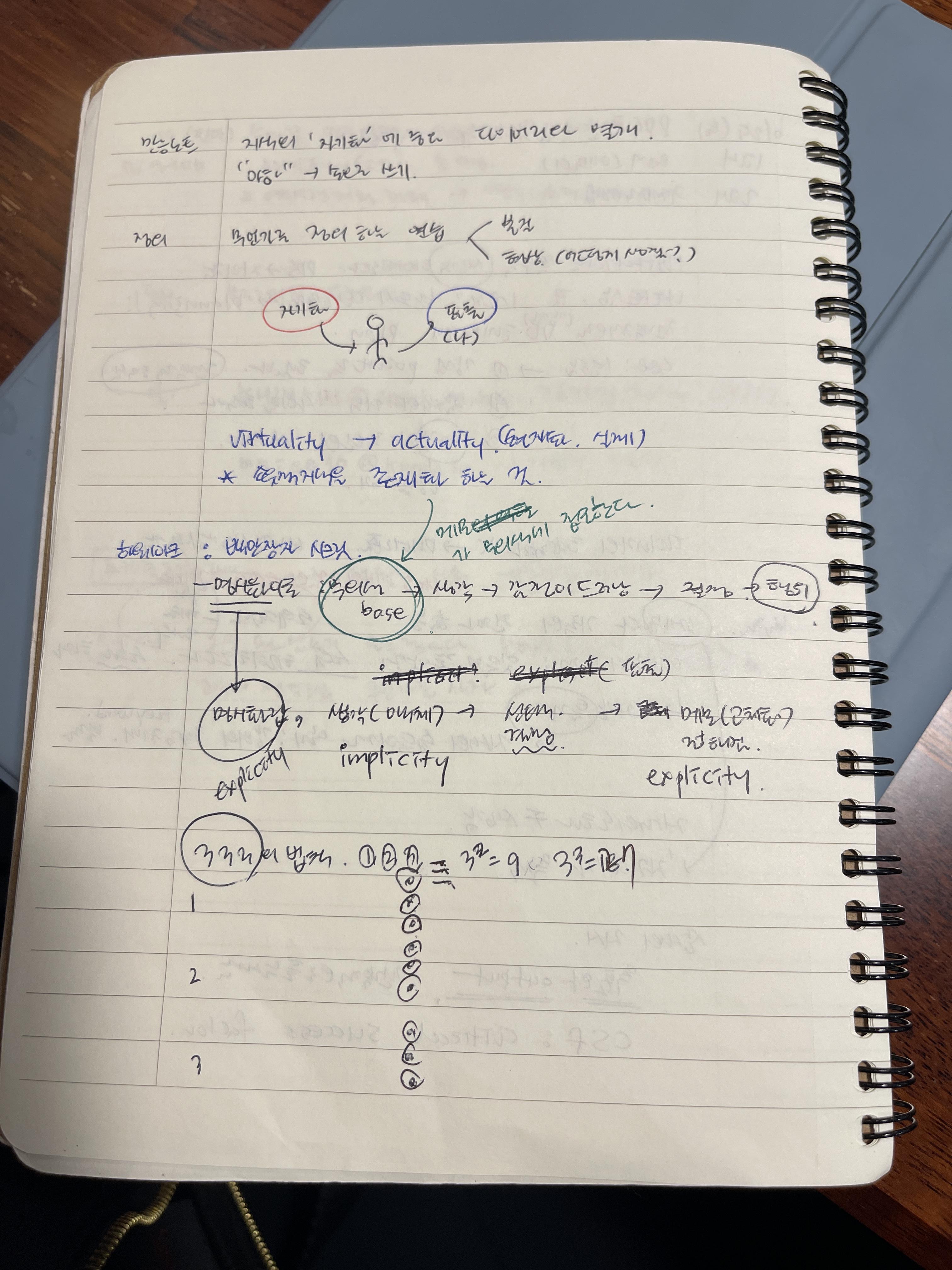메모를 하면서 내 안에 있는 소화한 지식을 존재화하는 것을 '표출'이라고 한다. 이것을 virtuality에서 actuality, 실제화/명시화 한다고도 말한다.
