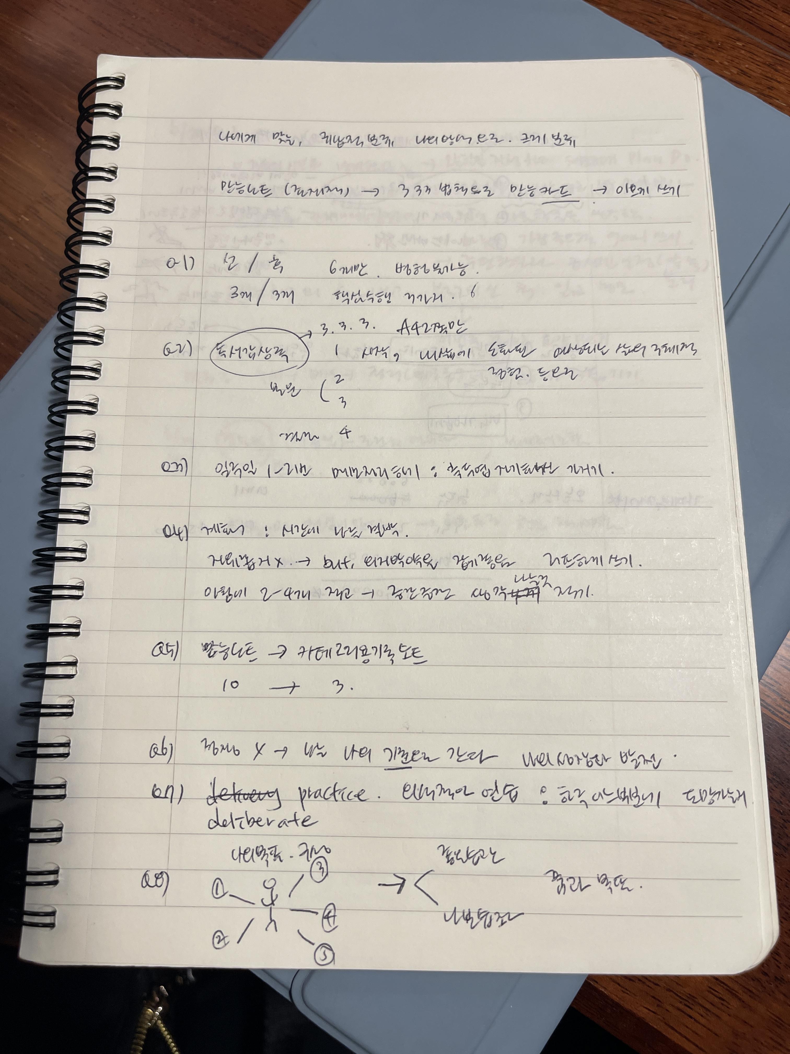 그 중 더 적을 것이 있으면 또 3가지씩(max 27개) 적는 방법으로 메모를 하면 좋다고 한다.