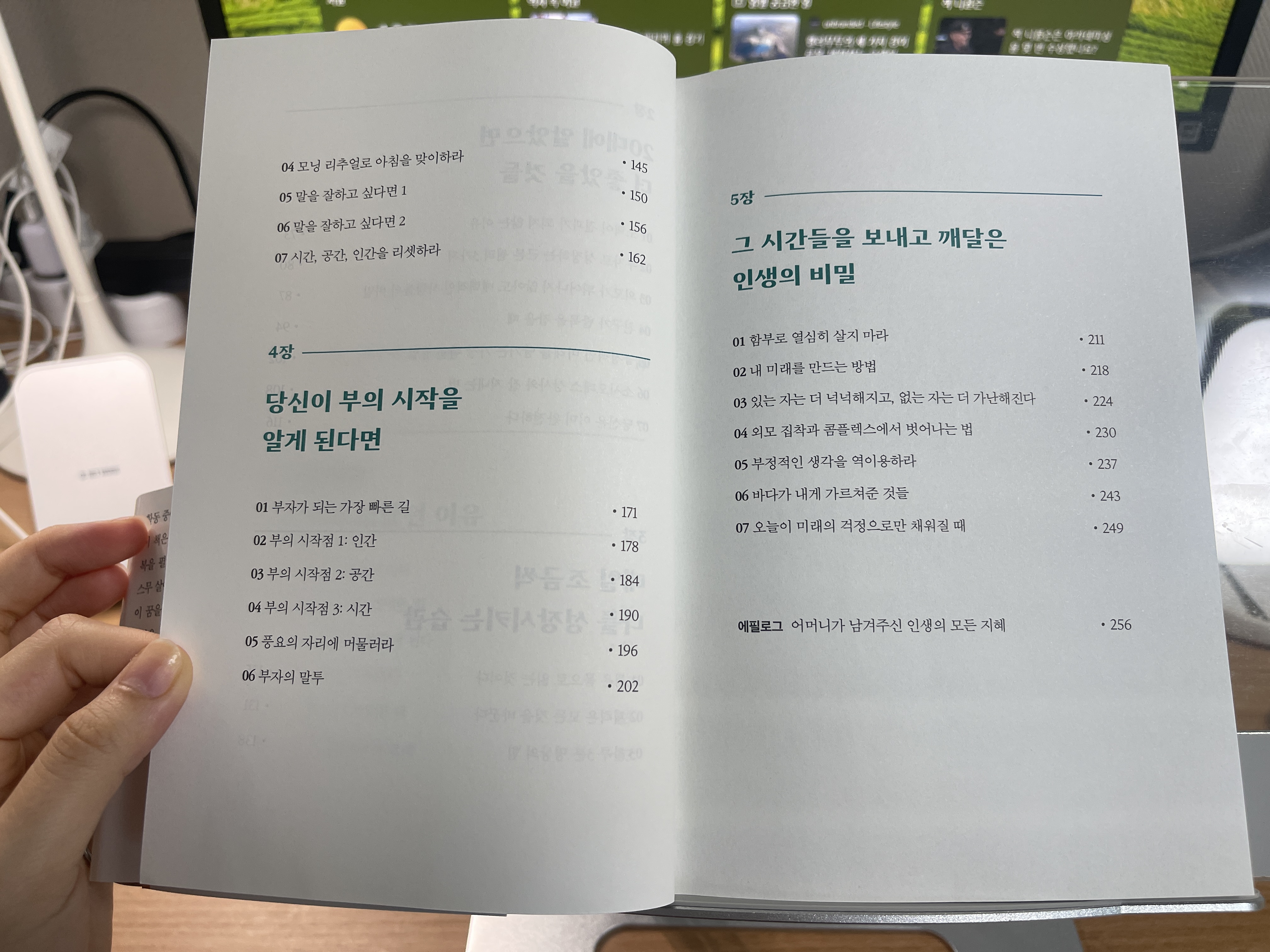 목차와 프롤로그에서 그냥 '부자가 되는 법'만 설명하는 일반적인 책과는 다르다는 것을 알 수 있습니다.