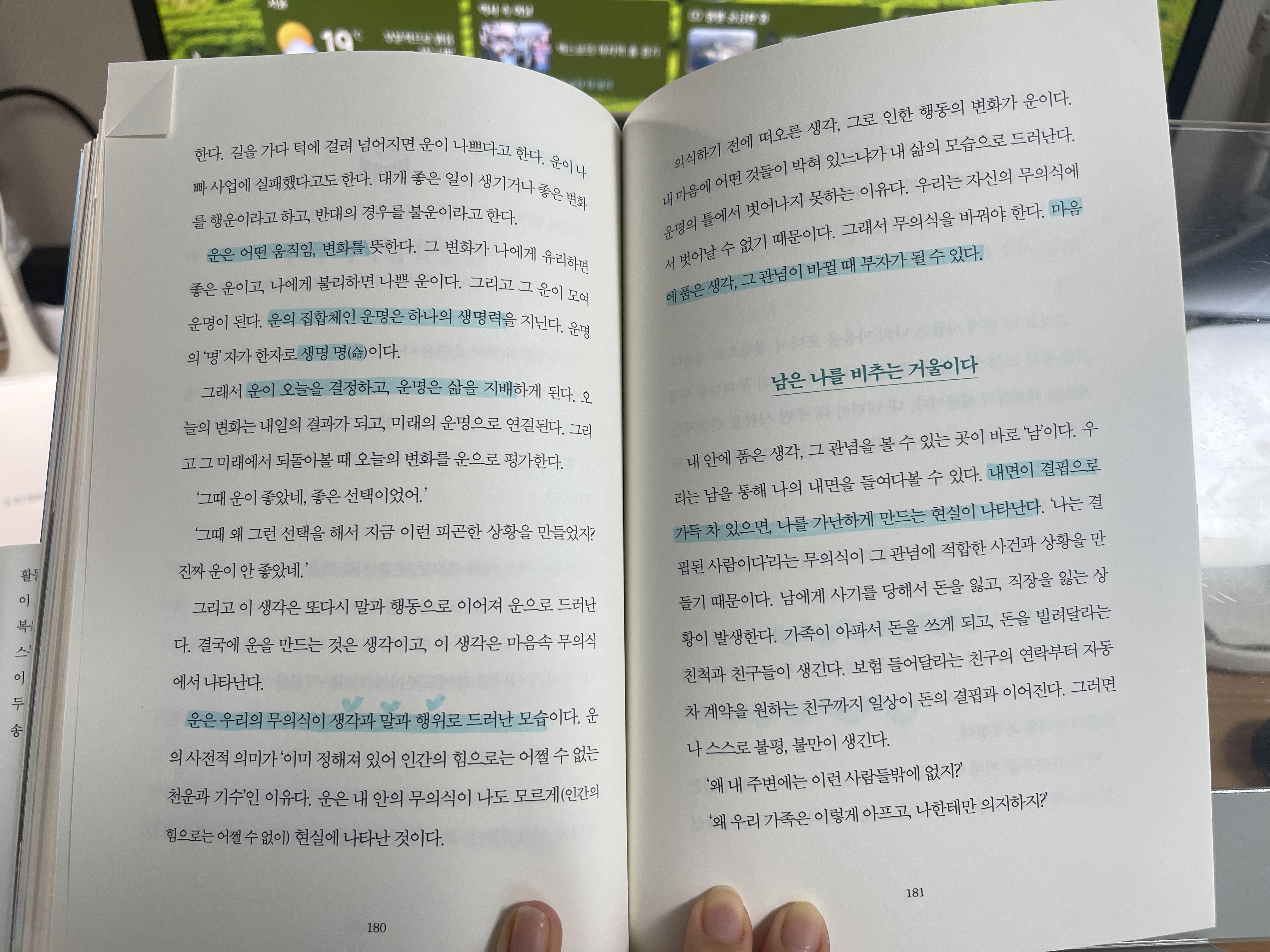 마음에 품은 생각, 무의식이 생각과 말과 행위로 드러난 것이 '운'이라니!!!