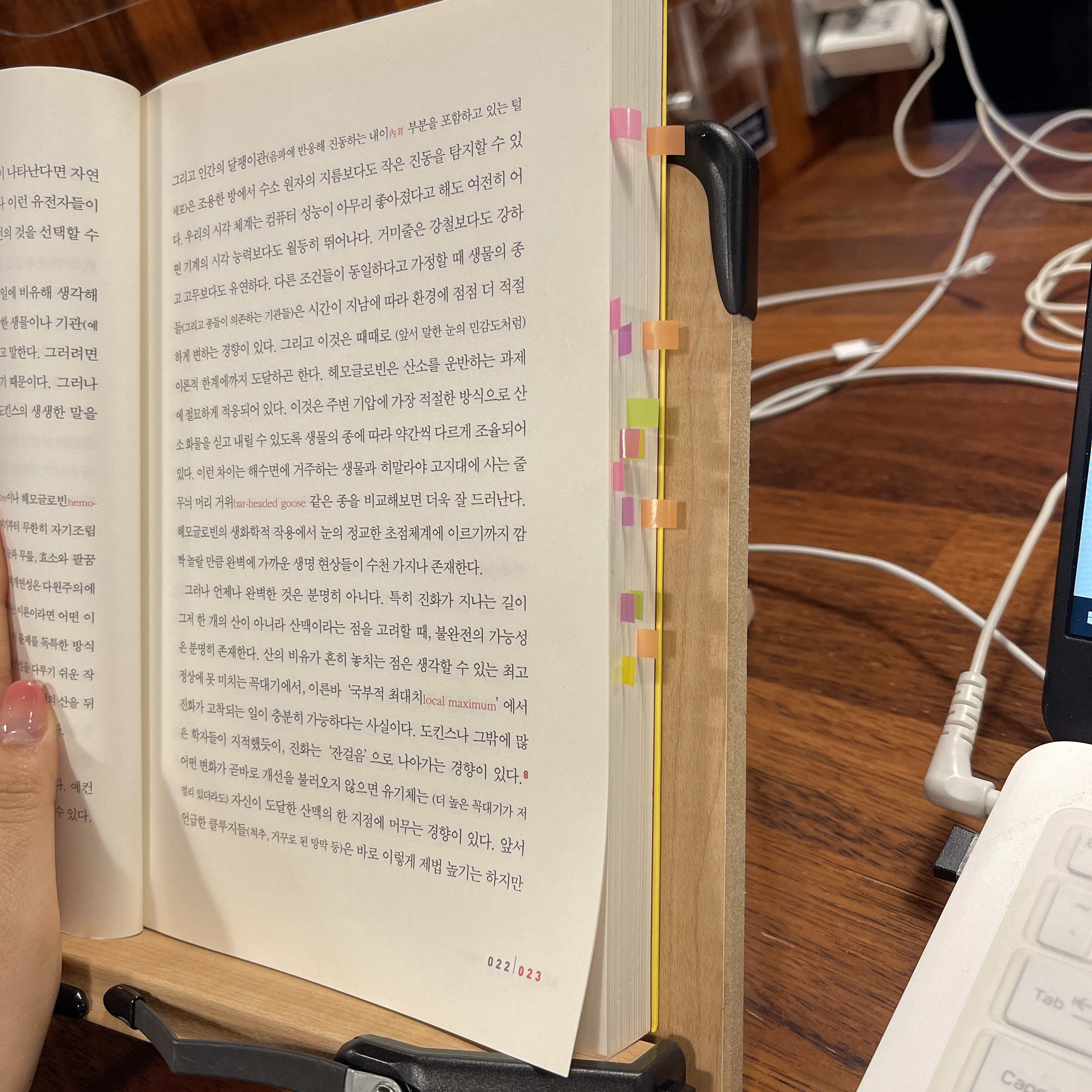 요즘은 책을 e-book으로 읽지만, 인쇄 책자를 읽을때는 위의 사진 처럼 포스트잇으로 괜찮았던 부분을 체크해두거나 접어둔다.